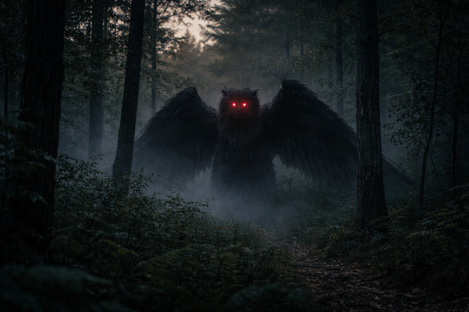 Voor alle voorgaande zaken zijn menselijke oorzaken aan te wijzen. Maar dat geldt lang niet voor alles in de Appalachen. Het is aan de westelijke rand van de Appalachen, waar de bergen langzaam overgaan in de vlaktes langs de Ohio-rivier, waar een van de beroemdste verhalen zijn oorsprong vindt. In november 1966 begonnen inwoners van Point Pleasant, West Virginia, meldingen te maken van een groot, gevleugeld wezen met gloeiende rode ogen. De waarnemingen stapelden zich op: meer dan honderd mensen beweerden het te hebben gezien in de weken die volgden. En toen, op 15 december 1967, precies dertien maanden na de eerste waarneming, stortte de Silver Bridge tijdens het spitsuur in. Zesenveertig mensen stierven.