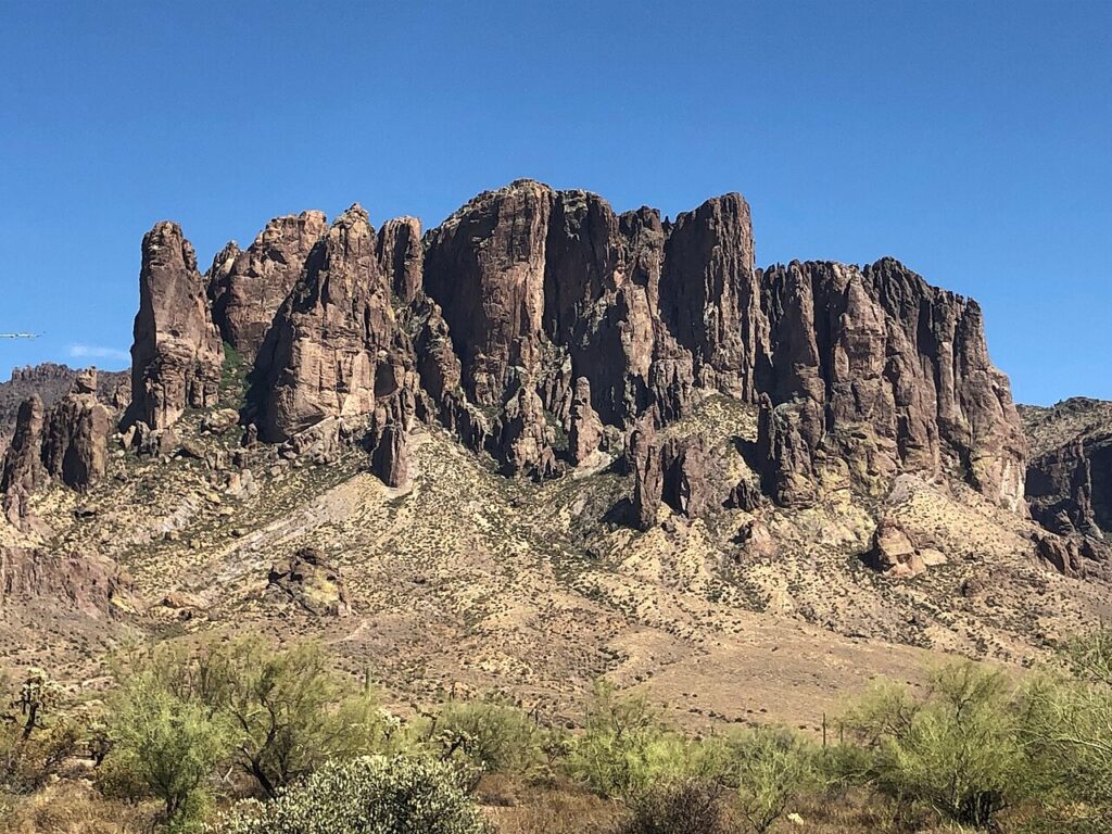 De Yavapai, het inheemse volk dat hier leefde lang voordat Europeanen kwamen, noemden de bergen “Wi:kchsawa” – de rotsen die overeind staan. Een beschrijvende naam voor de dramatische formaties die uit de woestijn omhoog schieten alsof een gigantische kracht ze daar heeft geplant.
