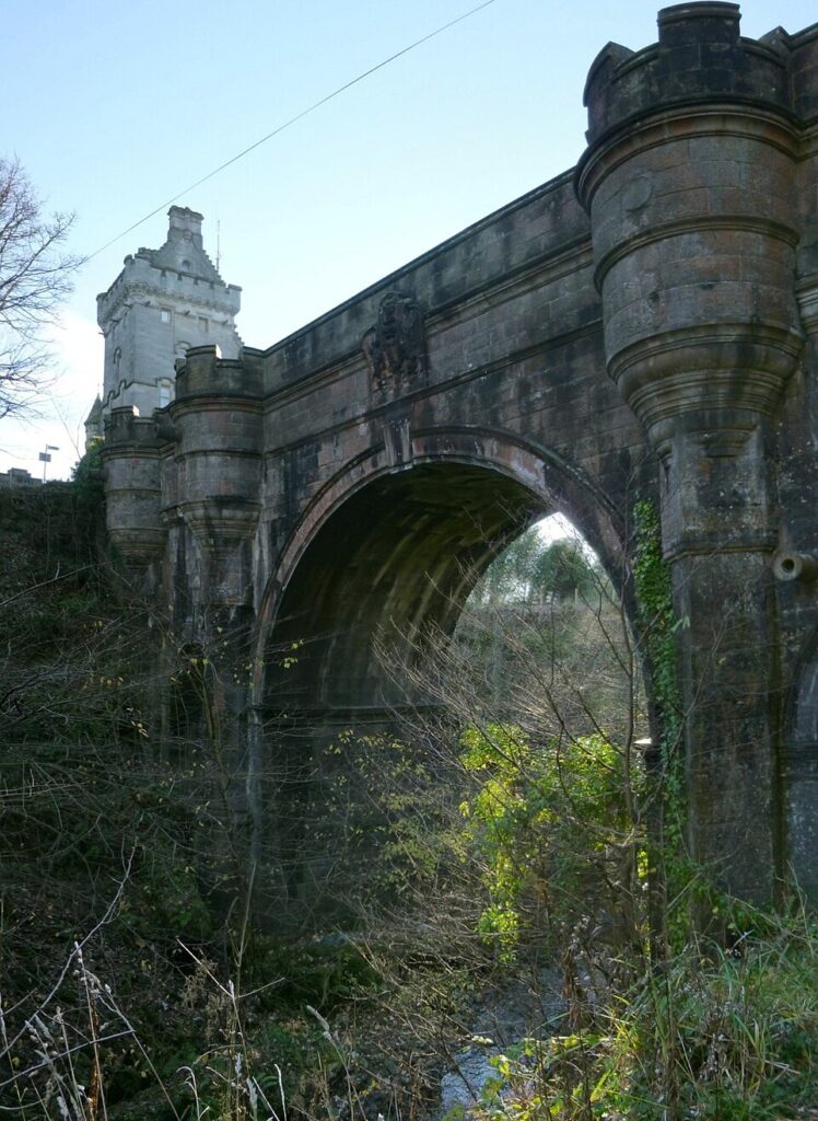 De brug maakt deel uit van het Overtoun Estate in Dumbarton, dat ten noordwesten van Glasgow ligt. Het staat op een landgoed dat ook Overtoun House omvat, een imposant herenhuis uit 1863 dat in diezelfde baronial stijl is gebouwd. Het landgoed werd gecreëerd door de industrialist James White, die zijn fortuin verdiende in de chemische industrie. Na zijn dood in 1884 nam zijn zoon John White het over en liet de brug bouwen. John White werd later Baron Overtoun, een titel die de familie een plek gaf in de Schotse aristocratie.